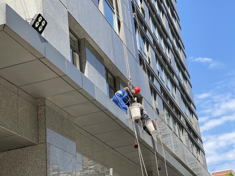 五一期間財富時代大廈服務中心清洗樓宇外墻