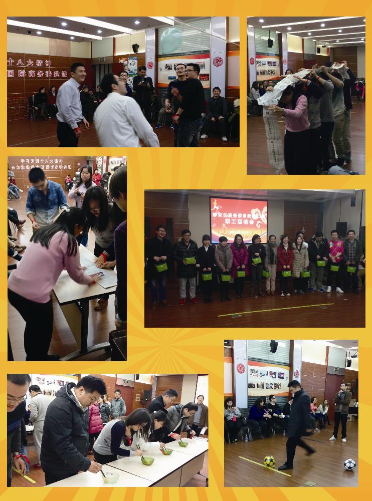 新年伊始,2月27日下午公司團員青年參加了由靜安區(qū)商務委工會舉辦的新年職工運動會,比賽現(xiàn)場氣氛活躍,洋溢著喜慶、和諧的氣氛。選手們共參加了足球射門、多人踢毽子、頂氣球、夾乒乓球接龍、財源滾滾五個項目的比拼,足球射門項目比的是個人足球射門技術(shù),其余四個項目比的是團隊合作、協(xié)同作戰(zhàn)的能力。經(jīng)過2個多小時激烈的角逐,由煙草、華捷視、銀欣、匯銀和中企物業(yè)聯(lián)合組成的海洋隊奪得了團體冠軍。新年職工運動會豐富了商務委系統(tǒng)青年員工的業(yè)余生活,鍛煉了身心,緩解了工作壓力,青年員工們期待今后能多參與這樣的活動。