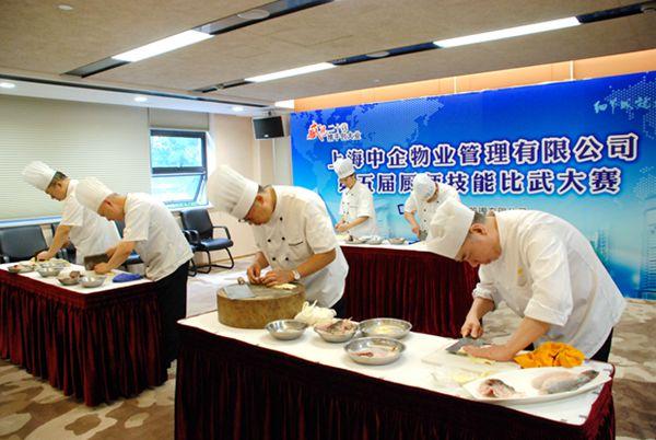 6月27日下午2:30中企物業(yè)第五屆廚師技能比武大賽在虹橋中華園會所拉開了帷幕,黃浦公安蓬萊項(xiàng)目、金陵項(xiàng)目、豐記碼頭項(xiàng)目、黃浦公安看守所拘留所項(xiàng)目、氣象局項(xiàng)目、靜安稅務(wù)項(xiàng)目6個廚房班組的22名廚師參加了本次大賽,董事長朱建華,總經(jīng)理嚴(yán)鑌賢,執(zhí)行董事談洪,副總經(jīng)理王偉康和王榮華應(yīng)邀參加了活動,比賽有幸邀請到國際會議中心大酒店行政總廚、中國烹飪協(xié)會專業(yè)委員會委員蘇德興老師擔(dān)任專業(yè)評委。