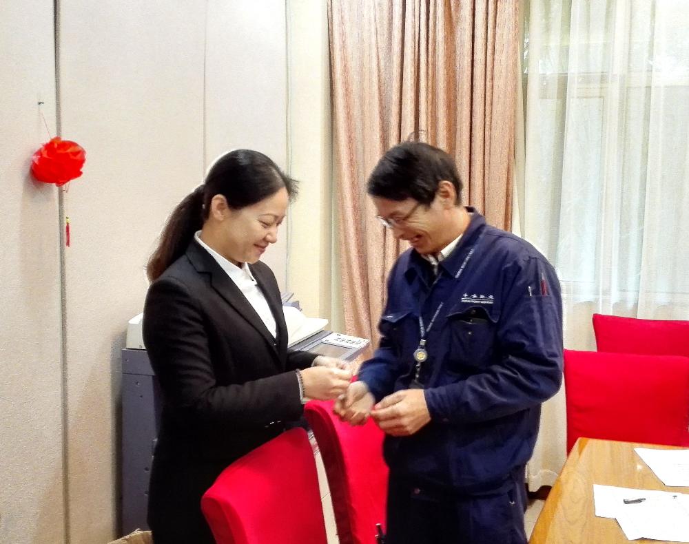 最后,支部書記余媛源,拿出十枚黨徽,親手為在座的黨員佩戴了紅燦燦的黨徽。余媛源書記說:今天,我們共產(chǎn)黨員佩戴黨徽上崗,正是核工院黨小組的黨員們希望能在工作中發(fā)揮黨員先鋒帶頭作用的第一步——“黨徽帶起來,身份亮出來!”。我們要在工作崗位上,發(fā)揮黨員的先進(jìn)性和先鋒帶頭作用,努力工作,創(chuàng)新實踐,積極帶動和幫助周圍的同事,也能時刻接受群眾們、同事們的監(jiān)督。