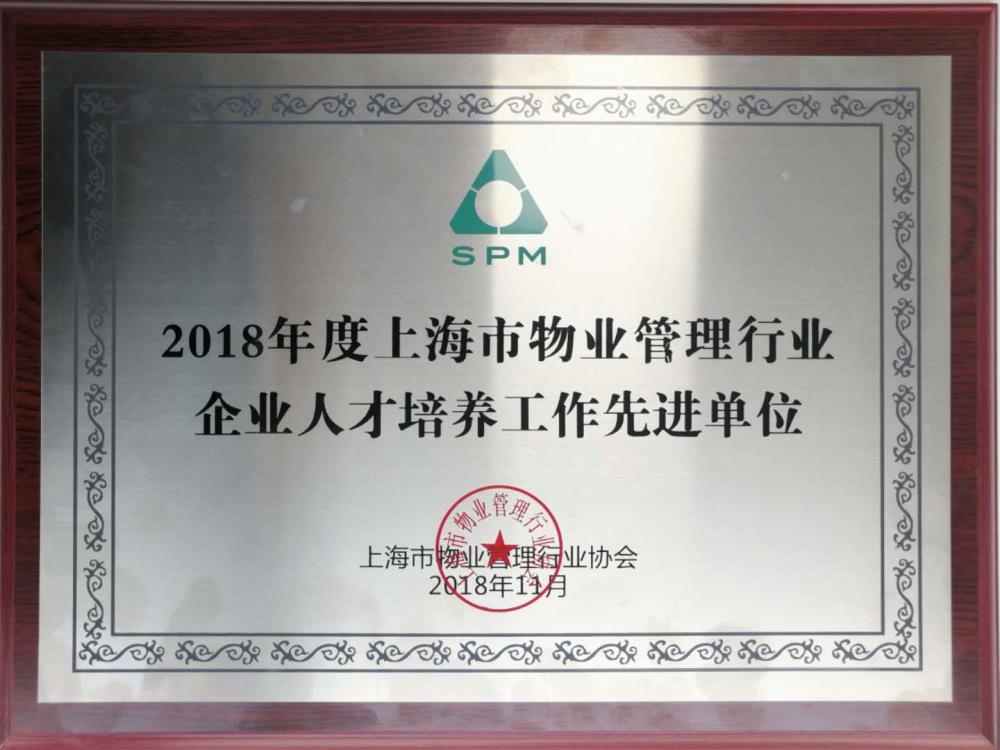2018年12月27日,公司榮獲了由上海市物業(yè)管理行業(yè)協(xié)會頒發(fā)的“2018年度上海市物業(yè)管理行業(yè)企業(yè)人才培養(yǎng)工作先進(jìn)單位”榮譽(yù)稱號。