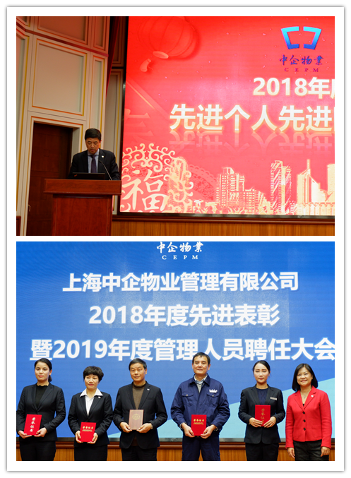1月18日,中企物業(yè)2018年度先進(jìn)表彰暨2019年度管理人員聘任大會(huì)在上海市醫(yī)學(xué)會(huì)三樓報(bào)告廳召開(kāi),公司高層、管理團(tuán)隊(duì)、項(xiàng)目經(jīng)理,以及表彰和聘任對(duì)象等相關(guān)人員齊聚一堂,共同回顧過(guò)去、展望未來(lái)。大會(huì)于下午14時(shí)拉開(kāi)序幕,由公司副總經(jīng)理劉真清主持,劉總簡(jiǎn)短介紹了此次大會(huì)的議程:“今天我們相聚在這里,召開(kāi)中企物業(yè)一年一度的表彰聘任大會(huì),總結(jié)2018年全年工作,對(duì)這一年中表現(xiàn)突出的先進(jìn)個(gè)人和團(tuán)隊(duì)進(jìn)行表彰,同時(shí)對(duì)新年工作提出規(guī)劃和部署,向管理人員頒發(fā)聘書(shū)。”