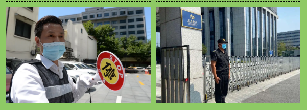 無論是東方日出還是傍晚夕陽,大樓門口保安的身影總是那么挺拔,在熱浪里有秩序地引導來往客戶和進出車輛。