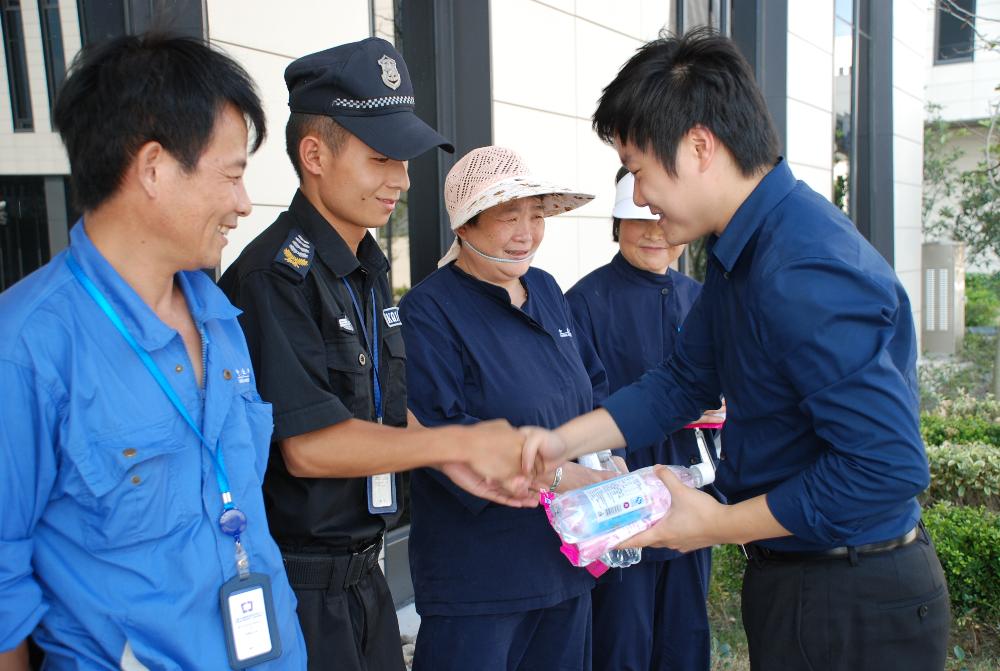 每到一處,公司領(lǐng)導(dǎo)雙手送上慰問品,并關(guān)切地囑咐他們注意避開烈日,多喝水,防中暑,確保工作安全,并對他們的付出表示感謝。公司領(lǐng)導(dǎo)還先后來到到員工休息室、服務(wù)中心辦公室,了解員工休息和辦公環(huán)境。公司領(lǐng)導(dǎo)要求各服務(wù)中心經(jīng)理要關(guān)心和確保勞保用品及時發(fā)放和防暑降溫措施的落實。